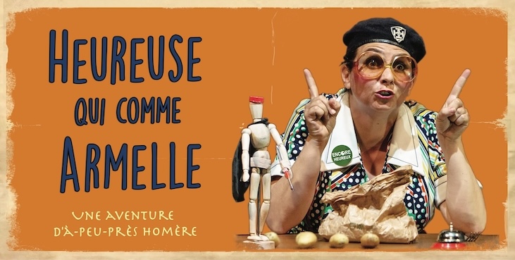 Armelle aime parler, colporter et transmettre des histoires de héros qui font partie de notre imaginaire collectif. Elle parcourt les routes et s’arrête quand elle rencontre de jeunes oreilles attentives. Elle va vous raconter à sa sauce l’épopée d’Ulysse. Une version déformée et transformée, parfois tronquée, car Armelle ne s’attache qu’aux épisodes qui la font vibrer ! Pour relater cette épopée, les formes utilisées sont la jonglerie théâtrale, le conte et la manipulation d’objets.